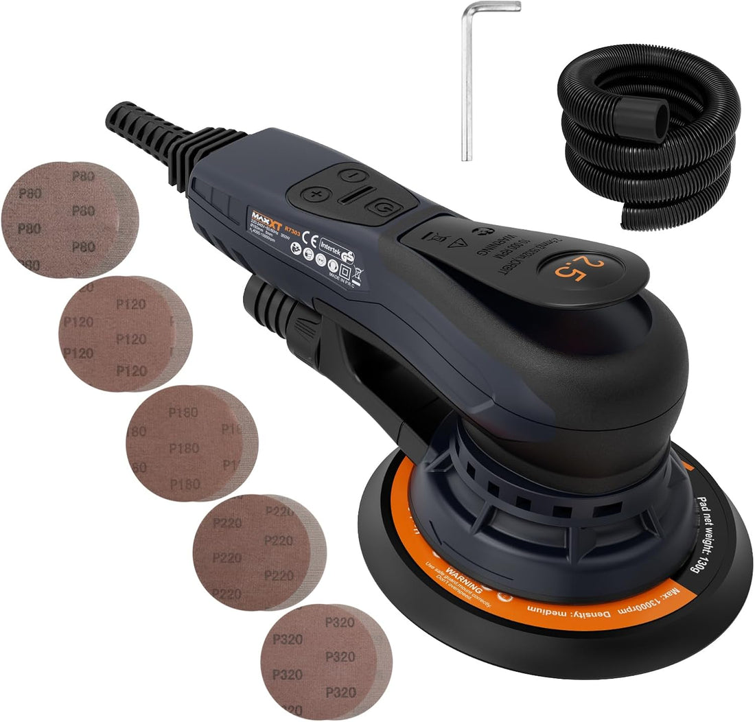 MAXXT Electric 2.5mm Random Orbital Sander Brushless 350W 3A Multi-Function Variable Speed Electric Corded Orbital Sanders Machine with 10 Sanding Paper for Woodworking (R7303-2.5mmOrbit)